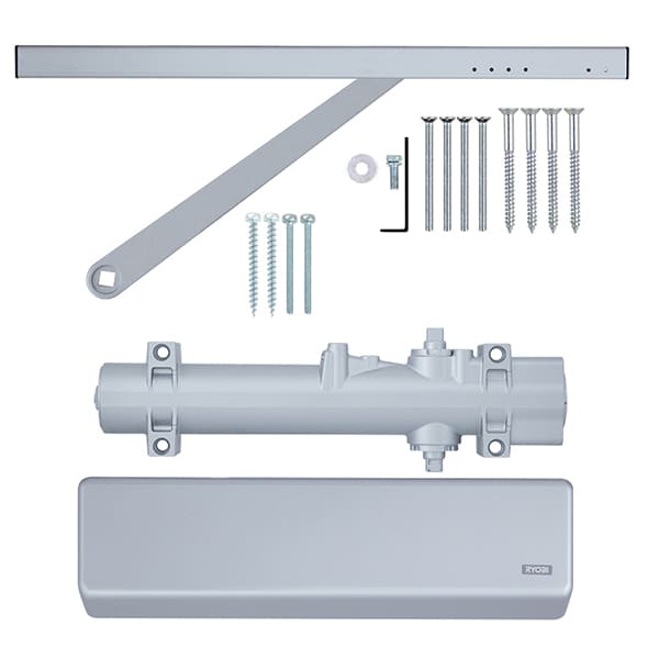 Продукція японського виробника RYOBI по праву визнана в усьому світі завдяки своїй відмінній якості. Дана модель RYOBI DS-4550T BC/DA SLD HO встановлюється накладним монтажем на дверні полотна масою до 80 кг та шириною до 1100 мм. Гідравлічний привід забезпечує чітку роботу дотягувача з кутом відкривання до 130°. Безпосередньо на корпусі є можливість регулювати основну швидкість в межах 130°-10°, швидкість захлопування - 10°-0° та гальмо відчинення - 75°-130°. Дана функція захищає дверне полотно від удару об стіну та виривання тяги дотягувача. Також фішкою цієї моделі є функція уповільнення зачинення. Це зручно, коли проходять багато людей чи потрібно занести вантаж. Загалом завдяки таким можливостям регулювання можна добитись максимально індивідуального налаштування зачинення дверей. Особливістю дотягувачів RYOBI є спеціальне термоконстантне масло. Воно забезпечує стабільну роботу навіть при великому перепаді температур. Взагалі робоча температура варіюється в діапазоні від -20 до +45°С. RYOBI DS-4550T BC/DA SLD HO може бути встановлений на ліво і правосторонні двері з можливістю відкривання як всередину так і назовні. В даній комплектації присутня ковзна тяга з фіксацією дверного полотна у відкритому положенні. Це дає можливість залишити двері відчиненими для провітрювання чи для зручності користування у комерційних приміщеннях. В сірому кольорі найкраще буде доповнювати двері подібних відтінків для того, щоб максимально уникнути контрастів та не привертати зайвої уваги.