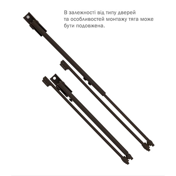 Тяга ABLOY DC197 призначена для дотягувача ABLOY DC247 в коричневому кольорі. Тяга стандартна, без фіксації дверного полотна у відчиненому стані. Може бути подовжена в залежності від типу дверей та особливостей монтажу.