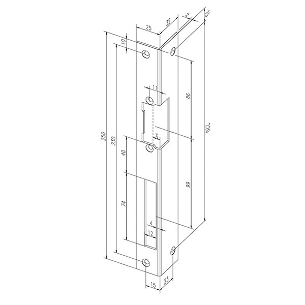 Розміри – 250х25х32х2 мм.