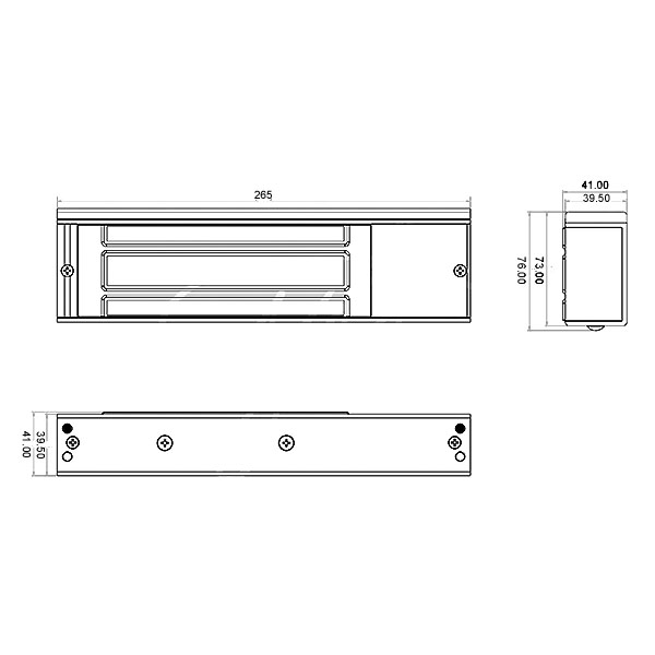• Розміри – замок з кріпильною планкою: 265х73х41 мм, зворотня планка: 185х60х13 мм.