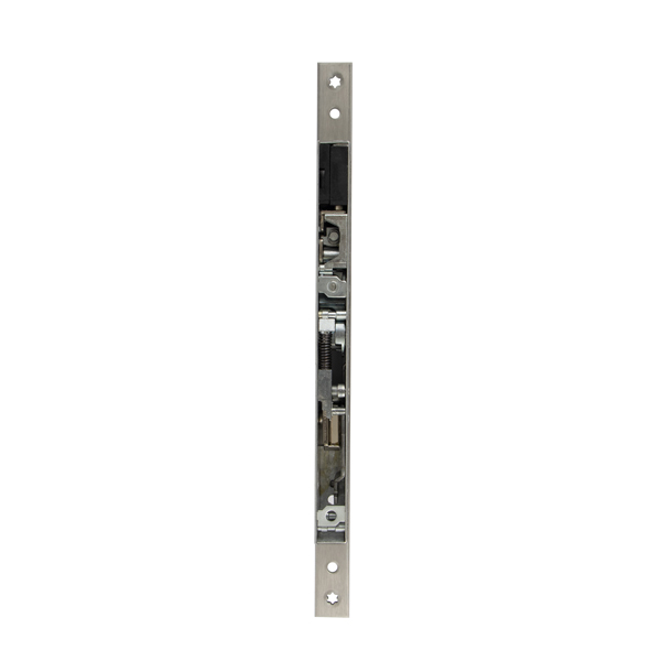 Особливістю моделі є автоматичне блокування ригелем і язичком при зачиненні дверей. Ригель приводиться в дію виключно механічним способом за допомогою циліндра стандарту EURO DIN. Замок працює в нормально замкненому стані, що означає, що двері залишаються заблокованими без подачі живлення. Відкрити замок можна лише за короткочасного електричного імпульсу тривалістю понад одну секунду. Це ідеальне рішення для ситуацій, коли необхідно забезпечити автоматичне блокування дверей у разі зникнення живлення.