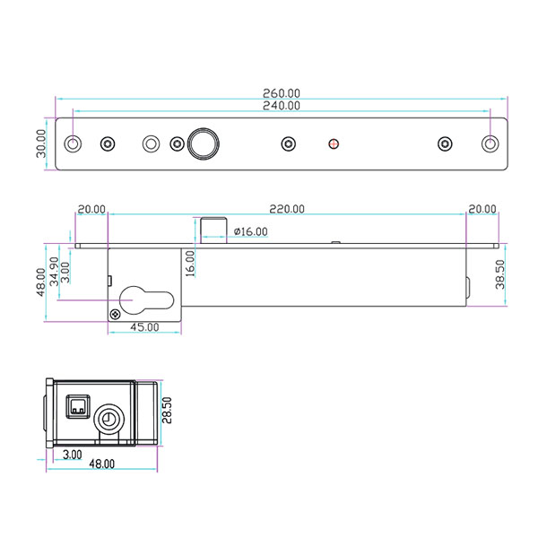 • Розмір замка: 270x30x48 мм.