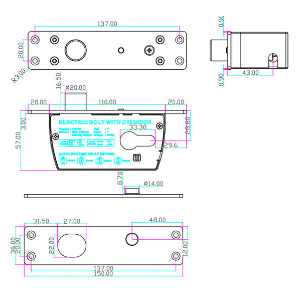 - Електроригельний замок з силою утримання на розрив до 2000 кг.