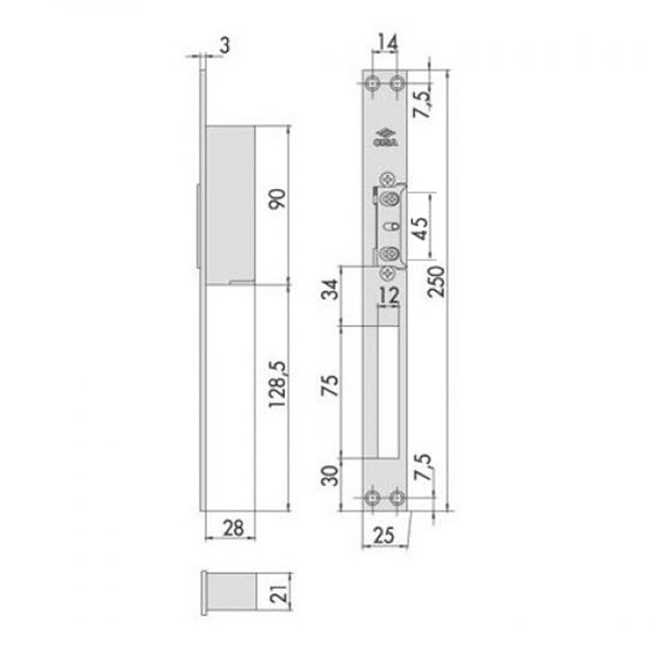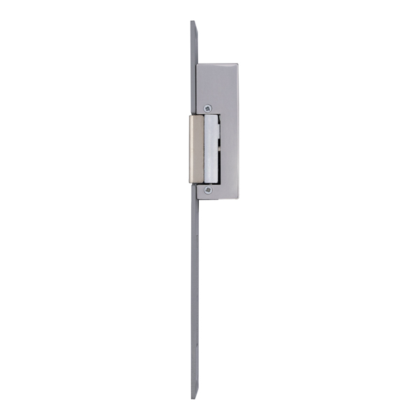 Електрозащіпка працює в нормально замкненому стані. Це означає, що вона замкнена без живлення, а відмикання відбувається поданням напруги. На корпусі присутній спеціальний важіль, який переводить електрозащіпку в постійно відчинений стан. Напруга складає 12V змінного або постійного струму. Після короткочасної подачі струму тривалістю не довше 1 секунди защіпка залишається відчиненою до відкриття-закриття дверей (функція механічної пам’яті). Постачається з довгою планкою розміром 250x25 мм.