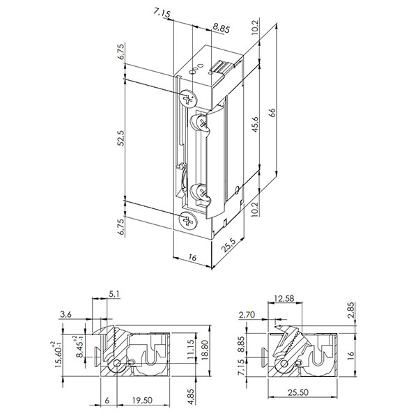 Електромеханічна защіпка DORCAS 99-2 AF – це елемент системи контролю доступу, який забезпечує надійну фіксацію дверей в зачиненому стані. Встановлюється врізним методом в коробку металевих, дерев’яних та металопластикових дверей. Сумісна з більшістю стандартних врізних замків, в яких присутній язичок. Підходить для ліво та правосторонніх дверей.