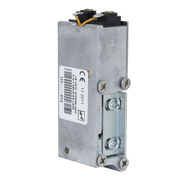 Електромеханічна защіпка EFF EFF 115 – це елемент системи контролю доступу, який забезпечує надійну фіксацію дверей в зачиненому стані. Встановлюється врізним методом в коробку металевих, дерев’яних та металопластикових дверей. Має спеціальну несиметричну конструкцію, тому сумісна з багатонаправленими замками MUL-T-LOCK та MUL-T-LOCK-ESETY зі зменшеною відстанню між основним ригелем та язичком замка. Підходить для ЛІВОСТОРОННІХ дверей.