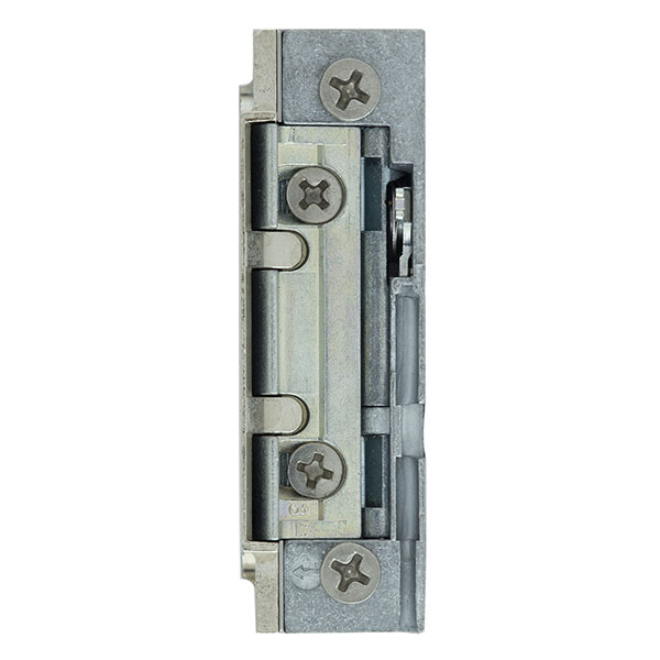 Електрозащіпка працює в нормально замкненому стані. Це означає, що вона замкнена без живлення, а відмикання відбувається поданням напруги. На корпусі присутній спеціальний важіль, який переводить електрозащіпку в постійно відчинений стан. Напруга складає 10-24 В постійного або змінного струму. Має язичок спеціальної радіальної форми, яка при відкриванні зміщується в глибину защіпки. За рахунок цього виріз в рамі під нього потрібен буде мінімальний. Язичок регулюється відносно корпусу з діапазоном 3 мм.