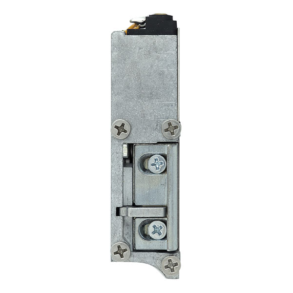 Електрозащіпка працює в нормально замкненому стані. Це означає, що вона замкнена без живлення, а відмикання відбувається поданням напруги. Після короткочасної подачі струму защіпка залишається відчиненою до відкриття-закриття дверей (функція механічної пам’яті). На корпусі присутній спеціальний важіль, який переводить електрозащіпку в постійно відчинений стан.