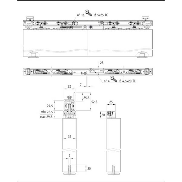 Опис Розсувна система KOBLENZ 0550 довжина 2 м на 2 полотна до 80 кг із синхронним відкриванням