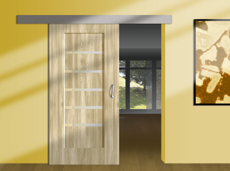 1в.jpg Матеріал дверейдерев’яні чи скляні. В конкретній моделі розсувної системи спосіб кріплення роликів до полотна відрізняється. Для дерев’яних дверей – ролики прикручуються до полотна шурупами. Скляні двері затискаються між кріпленням, ніби в «лещатах». Є спеціальні проставки, щоб не пошкодити скло.