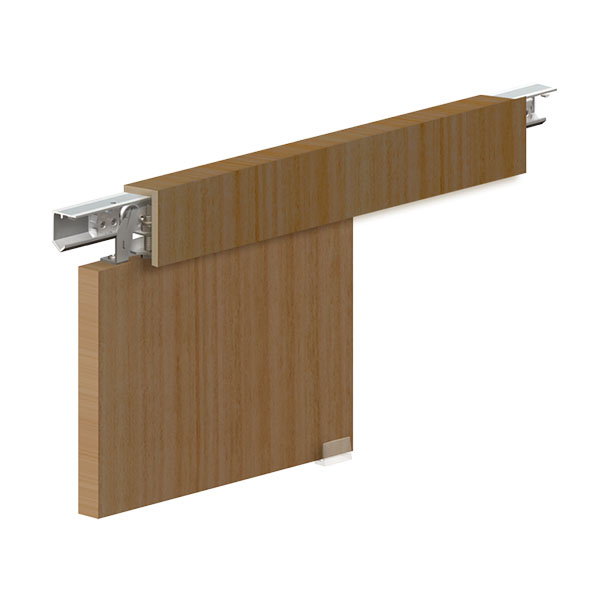 1в.jpg Матеріал дверейдерев’яні чи скляні. В конкретній моделі розсувної системи спосіб кріплення роликів до полотна відрізняється. Для дерев’яних дверей – ролики прикручуються до полотна шурупами. Скляні двері затискаються між кріпленням, ніби в «лещатах». Є спеціальні проставки, щоб не пошкодити скло.
