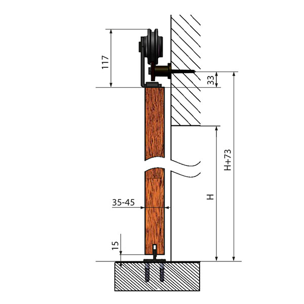1в.jpg Матеріал дверейдерев’яні чи скляні. В конкретній моделі розсувної системи спосіб кріплення роликів до полотна відрізняється. Для дерев’яних дверей – ролики прикручуються до полотна шурупами. Скляні двері затискаються між кріпленням, ніби в «лещатах». Є спеціальні проставки, щоб не пошкодити скло.