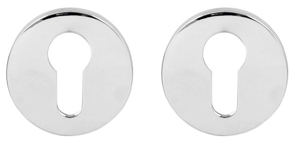 Накладки на серцевину торгової марки RDA. Матеріал виготовлення – цинковий сплав. Багатошарове гальванічне покриття гарантує збереження зовнішнього вигляду накладок до 60 місяців. Підбираються виключно під конкретну ручку, щоб зберегти відповідність між кольором та дизайном. Сучасний колір – хром – чудово підійде для інтер’єру з яскравими світлими відтінками. Для естетичного вигляду краще, щоб серцевина виступала з накладки не більше ніж на 5 мм і не була втоплена в ній.
