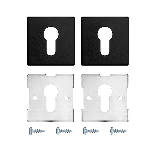 Накладки чеської торгової марки ROSTEX виготовлені із нержавіючої сталі. Призначені для використання в якості декоративного елементу на дверях в тому випадку, якщо на них встановлена серцевина. Сумісні із ручками ROSTEX з квадратною розетою в матовому чорному кольорі, довершуючи стильний вигляд дверей. Складаються із двох половинок на обидві сторони дверей. Монтаж не потребує зайвих зусиль.