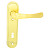 Польські ручки на планці – представляють собою практичну та надійну дверну фурнітуру за прийнятну ціну. Виготовляються із латуні, це міцний та приємний на дотик матеріал. Ручки з такого матеріалу стійкі до корозії та мають тривалий термін користування. Призначені для використання на вхідних або міжкімнатних дерев’яних та металевих дверях. Яскравий колір – золото – добре підійде для будинку чи квартири в світло-золотих тонах. Покриття методом гальваніки забезпечить надійних захист кольорового відтінку від подряпин та стирання. Під час вибору варто врахувати такий критерій як міжосьова відстань, вона може бути різною і залежить від механізму замка. Такі ручки мають тип планки під сувальдний ключ і підходять лише для сувальдних механізмів замка з типом ключа “буратіно” міжосьовою відстанню 72 мм. Процес кріплення планки до дверного полотна здійснюється за рахунок шурупів. Під час цього процесу важливо міцно зафіксувати ручки спеціальним гвинтом - гужоном, це збільшить термін експлуатації та дозволить уникнути проблем з провисанням ручок.