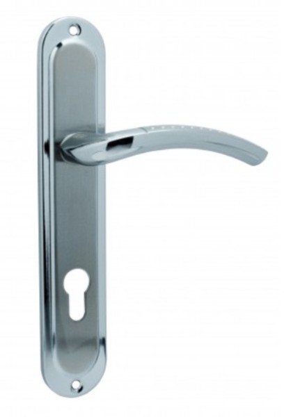 Ручки на планці KEDR з оригінальним дизайном в кольорі “сатин/хром” встановлюються на металеві або дерев’яні вхідні двері, які зачиняються серцевиною. Міжосьова відстань складає 85 мм. Це основний критерій в процесі вибору такого типу дверних ручок. Конструктивно вони виконані із алюмінієвого сплаву. Через це стійкі до зносу та деформації поверхні. Покриті гальванічним покриттям, яке захищає від дрібних механічних пошкоджень. Планка ручки кріпиться до дверного полотна шурупами або стяжними гвинтами. Нажимну частину потрібно міцно зафіксувати спеціальним гвинтом - гужоном. Це важливо, адже кваліфікований монтаж сприяє довгому терміну експлуатації ручок.