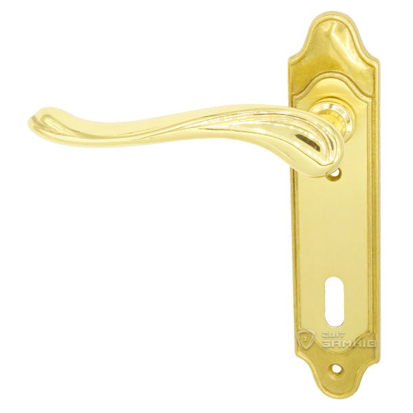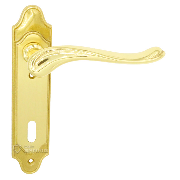 Польські ручки на планці – представляють собою практичну та надійну дверну фурнітуру за прийнятну ціну. Виготовляються із латуні, це міцний та приємний на дотик матеріал. Ручки з такого матеріалу стійкі до корозії та мають тривалий термін користування. Призначені для використання на вхідних або міжкімнатних дерев’яних та металевих дверях. Яскравий колір – золото – добре підійде для будинку чи квартири в світло-золотих тонах. Покриття методом гальваніки забезпечить надійних захист кольорового відтінку від подряпин та стирання. Під час вибору варто врахувати такий критерій як міжосьова відстань, вона може бути різною і залежить від механізму замка. Такі ручки мають тип планки під сувальдний ключ “буратіно” і підходять лише для сувальдних механізмів замка з міжосьовою відстанню 72 мм. Процес кріплення планки до дверного полотна здійснюється за рахунок шурупів. Під час цього процесу важливо міцно зафіксувати ручки спеціальним гвинтом гужоном, це збільшить термін експлуатації та дозволить уникнути проблем з провисанням ручок.