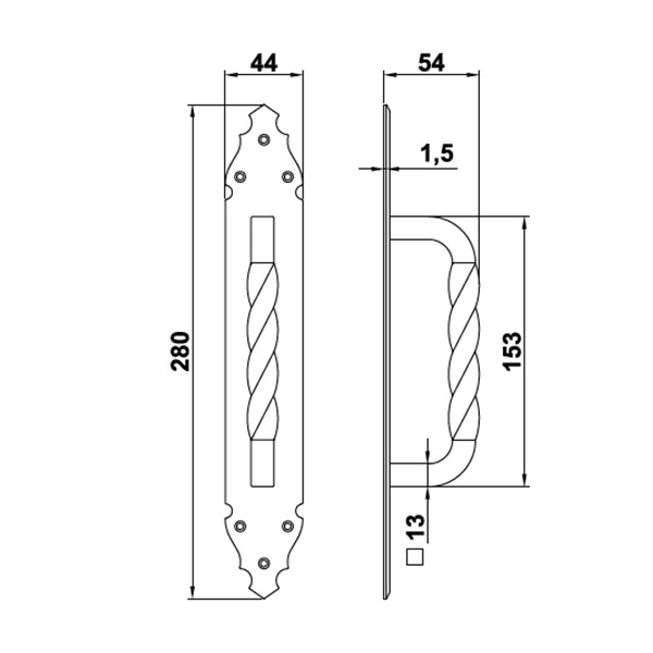 Ручки скоби іспанського виробництва AMIG мод.102 – це дверна фурнітура з вишуканим дизайном за бюджетну ціну. Переважно встановлюється на двері, хвіртки або ворота з дерева та металу. Виготовляється із цинкового сплаву. Вони легкі та приємні на дотик. Така модель має компактні розміри, нею легко та зручно користуватися. Класичний кований дизайн чудово доповнить полотна з різноманітними орнаментами та візерунками. Ручка монтується за допомогою шурупів або саморізів. Планка не має отвору під серцевину чи вороток.