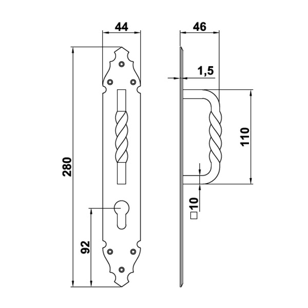 Ручки скоби іспанського виробництва AMIG мод.105 – це дверна фурнітура з вишуканим дизайном за бюджетну ціну. Переважно встановлюється на двері, хвіртки або ворота з дерева та металу. Виготовляється із цинкового сплаву. Вони легкі та приємні на дотик. Така модель має компактні розміри, нею легко та зручно користуватися. Класичний кований дизайн чудово доповнить полотна з різноманітними орнаментами та візерунками. Ручка монтується за допомогою шурупів або саморізів. Має отвір під серцевину, тому може використовуватися із звичайним (фалевим) ригелем, але за умови якщо він керується циліндром.