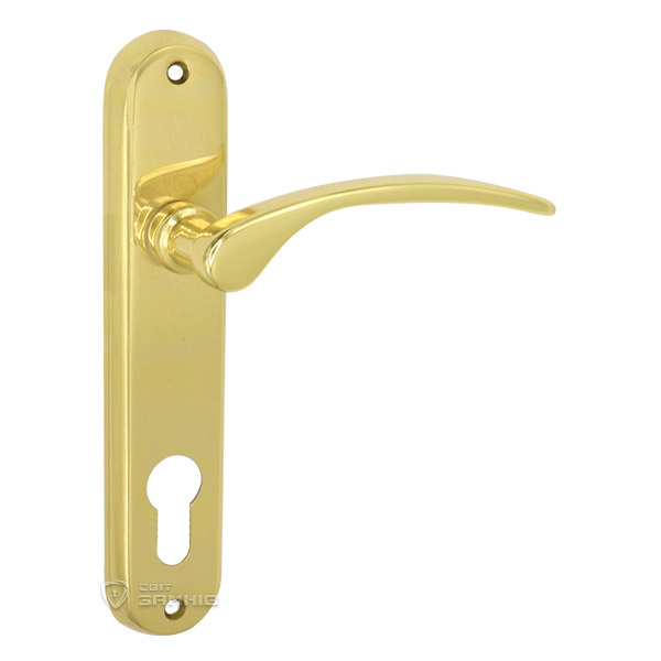 Польські ручки на планці – представляють собою практичну та надійну дверну фурнітуру за прийнятну ціну. Виготовляються із латуні, це міцний та приємний на дотик матеріал. Ручки з такого матеріалу стійкі до корозії та мають тривалий термін користування. Дана модель має тип планки під серцевину і встановлюється на міжкімнатні дерев’яні двері. Яскравий колір – золото – добре підійде для будинку чи квартири в світло-золотих тонах. Покриття методом гальваніки забезпечить надійний захист кольорового відтінку від подряпин та стирання. Під час вибору варто врахувати такий критерій як міжосьова відстань, вона може бути різною і залежить від механізму замка. Наприклад, ці ручки підходять для замків з міжосьовою відстанню 72 мм. Процес кріплення планки до дверного полотна здійснюється за рахунок шурупів. Під час цього процесу важливо міцно зафіксувати ручки спеціальним гвинтом гужоном, це збільшить термін експлуатації та дозволить уникнути проблем з провисанням ручок.