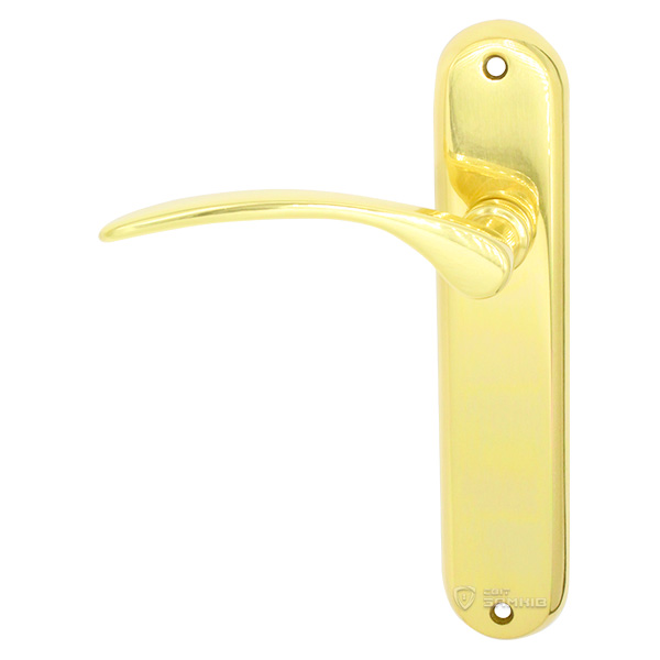 Польські ручки на планці – представляють собою практичну та надійну дверну фурнітуру за прийнятну ціну. Виготовляються із латуні, це міцний та приємний на дотик матеріал. Ручки з такого матеріалу стійкі до корозії та мають тривалий термін користування. Яскравий колір – золото – добре підійде для будинку чи квартири в світло-золотих тонах. Покриття методом гальваніки забезпечить надійний захист кольорового відтінку від подряпин та стирання. Ще однією особливістю цієї моделі є глуха планка, тобто такі ручки призначені для використання на міжкімнатних дерев’яних дверях, які не потрібно замикати на ключ чи вороток. Процес кріплення планки до дверного полотна здійснюється за рахунок шурупів. Під час цього процесу важливо міцно зафіксувати ручки спеціальним гвинтом гужоном, це збільшить термін експлуатації та дозволить уникнути проблем з провисанням ручок. Приємний дизайн в стилі модерн чудово доповнить дверне полотно з плавними лініями та підкреслить вишуканий інтер’єр.