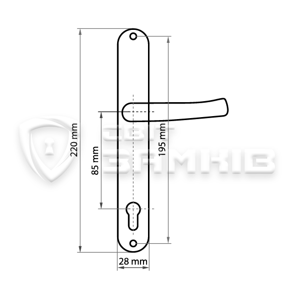 | Тип ручки на планці | під серцевину | |
