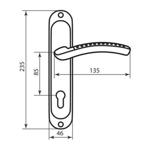 Ручки на планці торгової марки BRUNO. Ця модель виготовлена із алюмінієвого сплаву, його перевага в тому що він легкий та приємний на дотик. Встановлюється на дерев’яні міжкімнатні та вхідні двері. Захист кольорового відтінку від стирання протягом 36 місяців забезпечує гальванічне покриття. Сучасний колір – матовий нікель/хром – вдалий вибір для приміщення в спокійних сірих тонах. Під час вибору ручки на планці важливо звернути увагу на такий критерій як міжосьова відстань, вона може бути різною і залежить від механізму замка. Така модель підходить для механізмів замка з міжосьовою відстанню 85 мм. Під час кріплення важливо міцно зафіксувати ручки гужоном. Це спеціальний гвинт, який дасть змогу уникнути проблем з їх провисанням та розхитуванням. Популярний дизайн в стилі модерн буде ідеальним вибором для інтер’єру з плавними лініями.