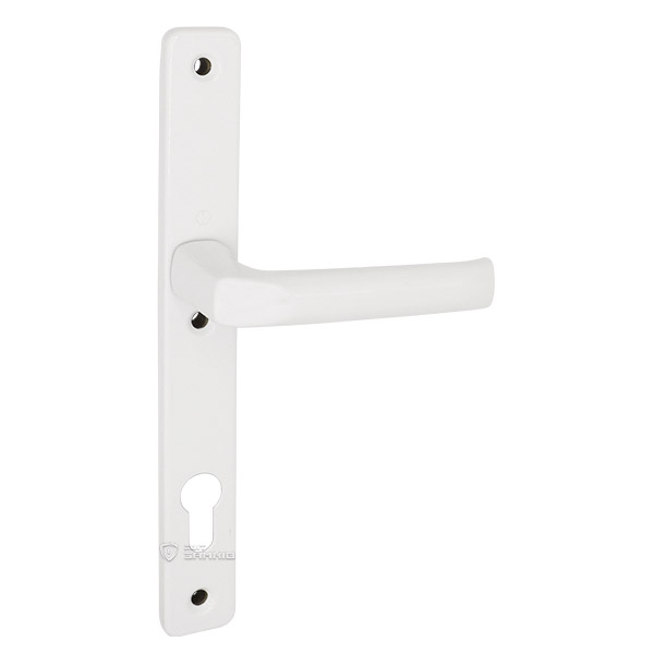 Ручки на планці німецького виробництва HOPPE. Надійна європейська дверна фурнітура, яка гармонійно доповнить дверне полотно в офісі або магазині. Матеріал виготовлення – алюмінієвий сплав, його переваги в тому, що він легкий та приємний на дотик. Встановлюються на вхідні та міжкімнатні двері з металопластику або алюмінію. Зручна нажимна частина оснащена металевим пружинним механізмом і приємно лягає в руку. Такі ручки не мають проблем з провисанням або розхитуванням. Планка вузька, кріпиться до дверного полотна стяжними гвинтами, що підвищує стійкість ручок до силового зламу і забезпечує їх надійну фіксацію. Білий колір цієї моделі чудово підійде для офісного приміщення або будинку в світлих відтінках, а темному дверному полотну додасть трохи контрасту. При виборі важливо враховувати такий технічний критерій як міжосьова відстань, вона може бути різною і підбирається виключно під Ваш замок. Ця модель підходить тільки для механізмів замка з міжосьовою відстанню 92 мм.