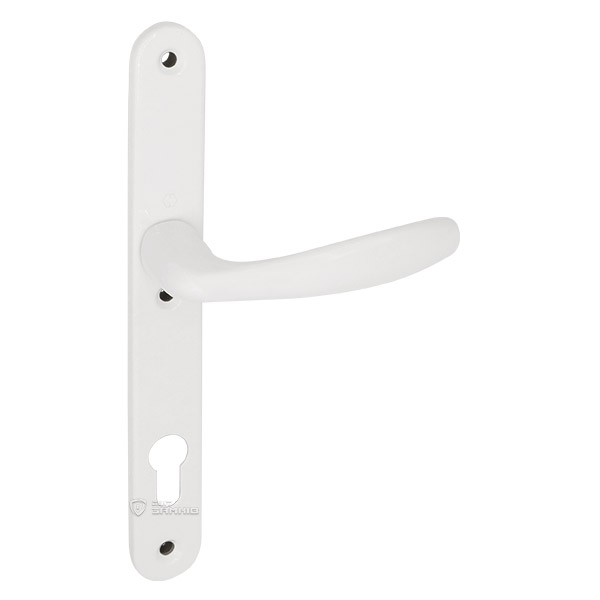Ручки на планці німецького виробництва HOPPE. Надійна європейська дверна фурнітура, яка гармонійно доповнить дверне полотно в офісі або магазині. Матеріал виготовлення – алюмінієвий сплав, його переваги в тому, що він легкий та приємний на дотик. Встановлюються на вхідні та міжкімнатні двері з металопластику або алюмінію. Зручна нажимна частина оснащена металевим пружинним механізмом і приємно лягає в руку. Такі ручки не мають проблем з провисанням або розхитуванням. Планка вузька, кріпиться до дверного полотна стяжними гвинтами, що підвищує стійкість ручок до силового зламу і забезпечує їх надійну фіксацію. Білий колір цієї моделі чудово підійде для офісного приміщення або будинку в світлих відтінках, а темному дверному полотну додасть трохи контрасту. При виборі важливо враховувати такий технічний критерій як міжосьова відстань, вона може бути різною і підбирається виключно під Ваш замок. Ця модель підходить тільки для механізмів замка з міжосьовою відстанню 92 мм.