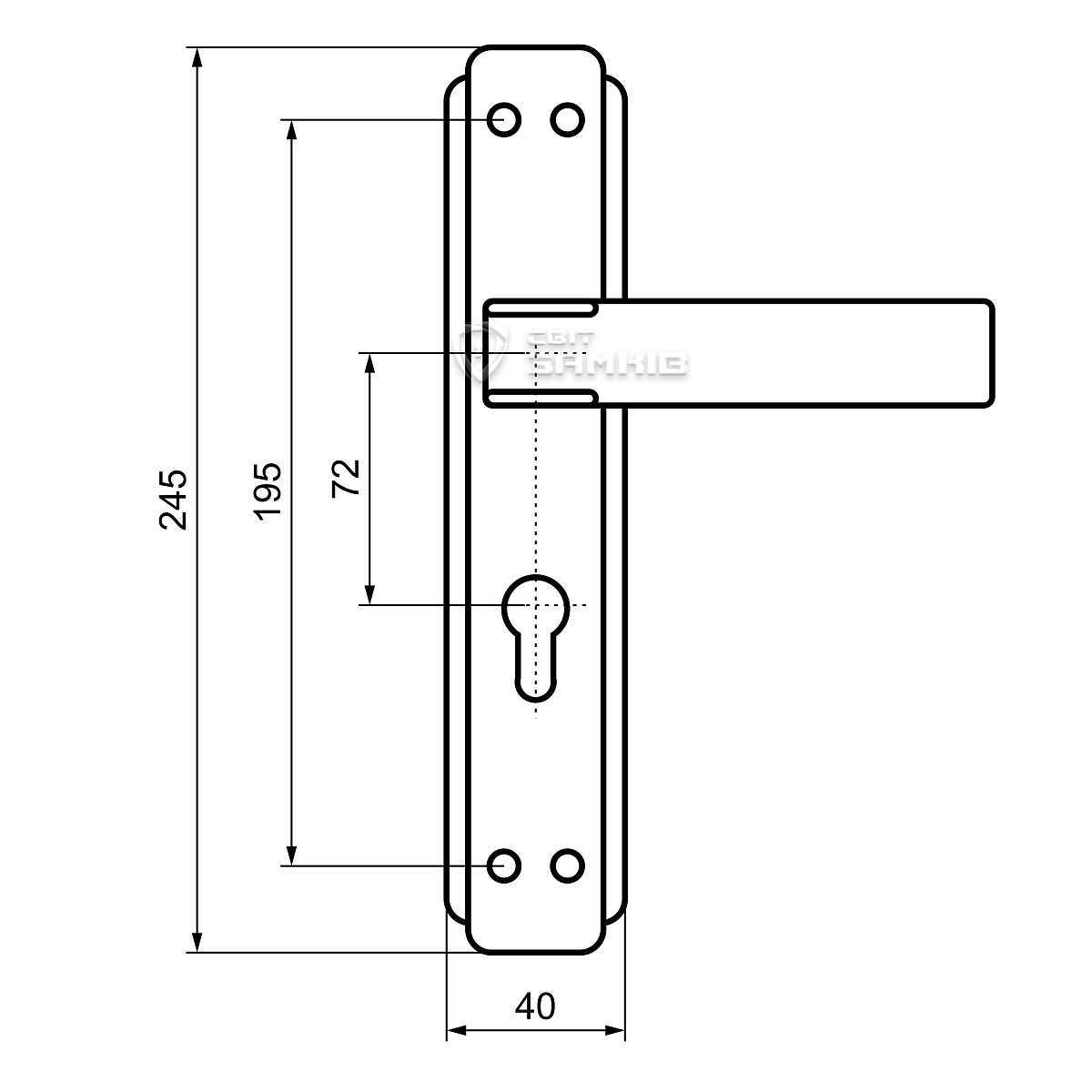 | Тип ручки на планці | під серцевину | |