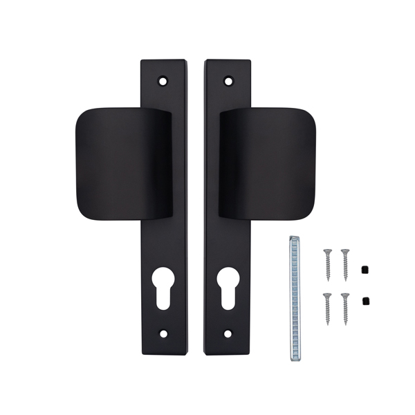 Даний варіант ручок є універсальним, бо вони підходять як для лівих, так і правих дверей. Обидві сторони ручок фіксовані та мають пелюстку, за яку можна потягнути та відкрити двері як зсередини, так і зовні. Головне призначення даної фурнітури є можливість встановлення їх для системи СКУД (система контролю управління доступом), де потрібен обмежений доступ. Використовуються такі ручки на вхідних дверях з домофоном, або хвіртках із металу, металопластику та інших типів ПВХ профілю із механізмом закривання під серцевину.