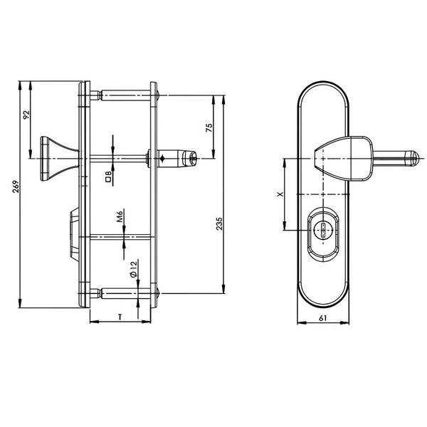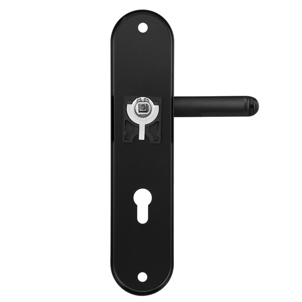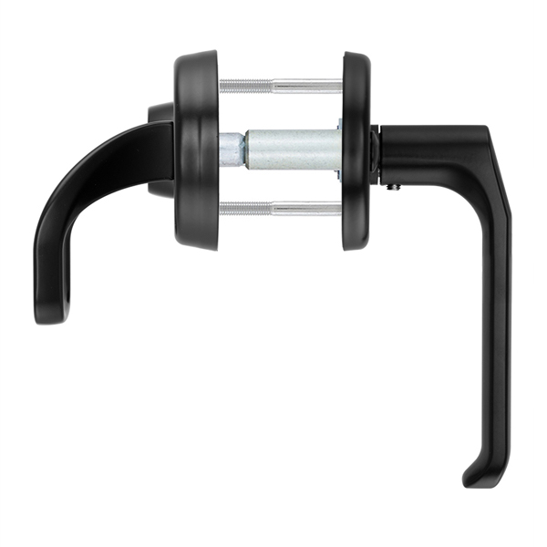 Ця модель має два типи ручок, з одного боку це звичайна натискна, а з іншого фіксована. Зазвичай вони використовуються в приміщеннях з великим трафіком людей. Під час вибору обов'язвово зверніть увагу на міжосьову відстань ручок та Вашого механізму замка. Дана фурнітура підходить тільки для механізмів замка з міжосьової відстанню 85 мм. За необхідності монтажу фурнітури на товстіші двері рекомендуємо придбати відповідний подовжуючий набір.