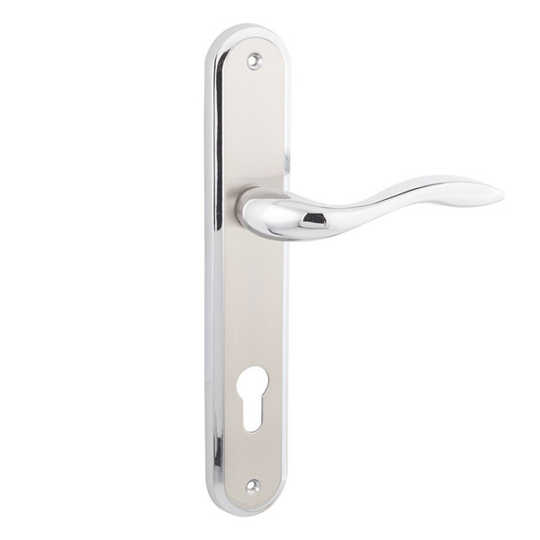 Ручки на планці турецького виробництва SIBA. Це надійна та якісна дверна фурнітура за прийнятну ціну. Переважно використовується на вхідних та міжкімнатних дерев’яних або металевих дверях в квартиру чи будинок. Матеріал виготовлення – цинковий сплав. Його перевага в тому, що він міцний та стійкий до навантажень. Довга масивна планка чудово доповнить дверне полотно великих розмірів. Нажимна частина оснащена металевим пружинним механізмом, що забезпечить зручне користування та гарантує понад 200 тисяч натискань. Покриття наноситься методом гальваніки у декілька шарів, завдяки чому кольоровий відтінок буде захищений від стирання та подряпин до 60 місяців. Популярний колір – хром – чудово підійде для інтер’єру з яскравими світлими відтінками. Вдалий вибір ручки на планці залежить від такого критерію як міжосьова відстань. Ця модель підходить тільки для механізму замка з міжосьовою відстанню 85 мм. Кріплення планки до дверного полотна відбувається за рахунок шурупів або стяжних гвинтів. Під час цього процесу важливо міцно зафіксувати ручки спеціальним гвинтом – гужоном. Він збільшить термін експлуатації ручок та дозволить уникнути проблем з їх провисанням.