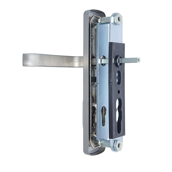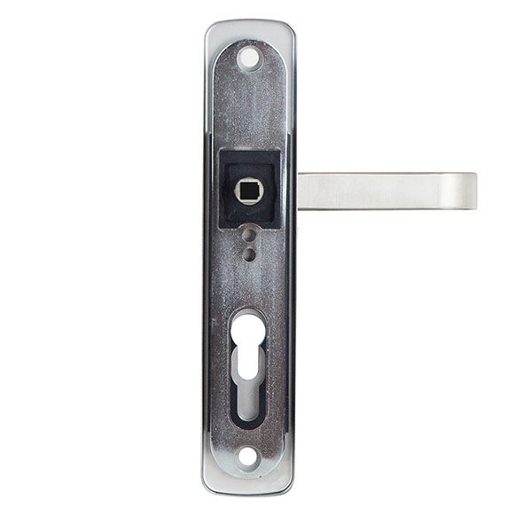 Зламостійкі ручки на планці з протектором чеського виробництва ROSTEX. Якщо у Вас виникає потреба надійно захистити замок та серцевину, то ця модель зможе повністю задовільнити її. Ручки виготовляються із міцної нержавіючої сталі, планки в свою чергу виготовляються із цинкового сплаву. Ззовні планки не видно отворів для кріплення, вони знаходяться в середині і фіксуються за допомогою двох масивних гвинтів М8. Серцевина захищена протектором із гартованої сталі і шайбою з отвором під ключ з нержавіючої сталі. Завдяки цьому ця модель має високий рівень захисту від висвердлювання, виламування та інших силових методів зламу. Кольоровий відтінок захищений спеціальним методом гальваніки, що гарантує його стійкість до стирання протягом 120 місяців. Колір нержавіюча сталь матова – чудово доповнить приміщення в холодних світлих тонах, а інтер’єру в темних відтінках додасть трохи контрасту. Ця модель оснащена зручною нажимною частиною з металевим пружиним механізмом, завдяки чому ручки не будуть провисати та розхитуватись. Під час вибору зверніть увагу на міжосьову відстань ручок та Вашого механізму замка. Дані ручки підходять тільки для механізмів замка з міжосьової відстанню 72 мм. За необхідності монтажу фурнітури на товстіші двері рекомендуємо придбати відповідний подовжуючий набір.