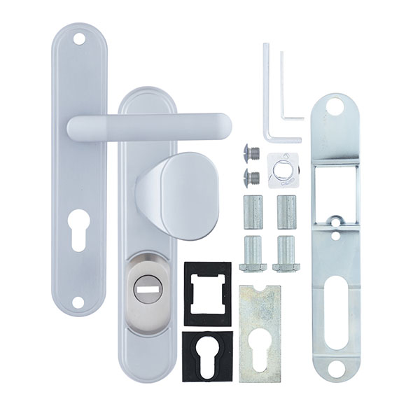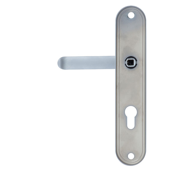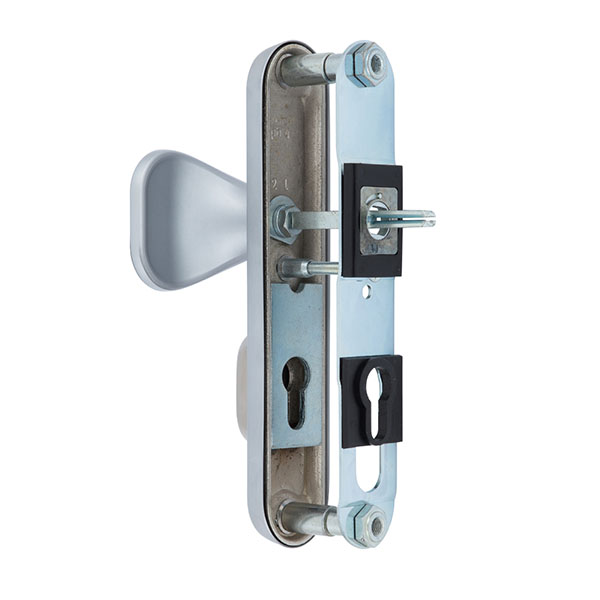 Зламостійкі ручки на планці з протектором чеського виробництва ROSTEX. Якщо у Вас виникає потреба надійно захистити замок та серцевину, то ця модель зможе повністю задовільнити її. Ручки виготовляються із міцної нержавіючої сталі, планки в свою чергу виготовляються із цинкового сплаву. Ззовні планки не видно отворів для кріплення, вони знаходяться в середині і фіксуються за допомогою двох масивних гвинтів М8. Серцевина захищена протектором із гартованої сталі і шайбою з отвором під ключ з нержавіючої сталі. Завдяки цьому ця модель має високий рівень захисту від висвердлювання, виламування та інших силових методів зламу. Кольоровий відтінок захищений спеціальним методом гальваніки, що гарантує його стійкість до стирання протягом 120 місяців. Вдале поєднання кольорів – хром сатин – доречно підкреслить інтер'єр в спокійних сірих тонах. В цієї моделі тип ручок різний, з одного боку це звичайна нажимна, а з іншого фіксована. Зазвичай такі ручки використовують в приміщеннях з великим трафіком людей. Під час вибору зверніть увагу на міжосьову відстань ручок та Вашого механізму замка. Дані ручки підходять тільки для механізмів замка з міжосьової відстанню 72 мм. За необхідності монтажу фурнітури на товстіші двері рекомендуємо придбати відповідний подовжуючий набір.