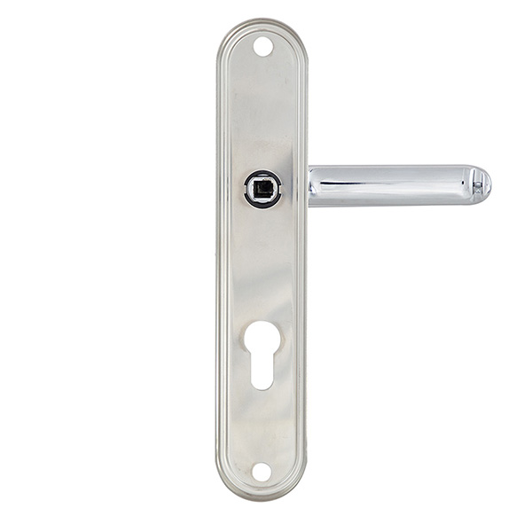 Зламостійкі ручки на планці з протектором чеського виробництва ROSTEX. Якщо у Вас виникає потреба надійно захистити замок та серцевину, то ця модель зможе повністю задовільнити її. Ручки виготовляються із міцної нержавіючої сталі, планки в свою чергу виготовляються із цинкового сплаву. Ззовні планки не видно отворів для кріплення, вони знаходяться в середині і фіксуються за допомогою двох масивних гвинтів М8. Серцевина захищена протектором із гартованої сталі і шайбою з отвором під ключ з нержавіючої сталі. Завдяки цьому ця модель має високий рівень захисту від висвердлювання, виламування та інших силових методів зламу. Кольоровий відтінок захищений спеціальним методом гальваніки, що гарантує його стійкість до стирання протягом 120 місяців. Популярний колір – хром матовий – чудово буде виглядати в приміщені чи кімнаті в сірих тонах. Ця модель оснащена зручною нажимною частиною з металевим пружиним механізмом, завдяки чому ручки не будуть провисати та розхитуватись. Під час вибору зверніть увагу на міжосьову відстань ручок та Вашого механізму замка. Дані ручки підходять тільки для механізмів замка з міжосьової відстанню 72 мм. За необхідності монтажу фурнітури на товстіші двері рекомендуємо придбати відповідний подовжуючий набір.