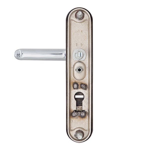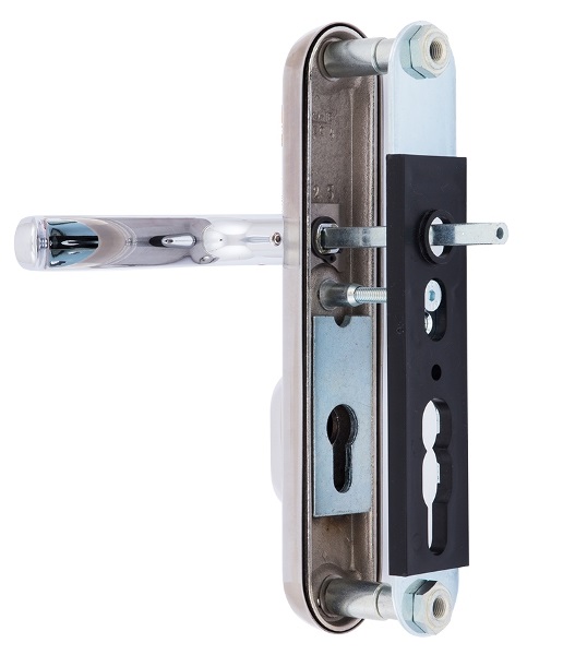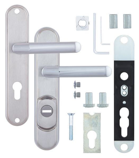 Зламостійкі ручки на планці з протектором чеського виробництва ROSTEX. Якщо у Вас виникає потреба надійно захистити замок та серцевину, то ця модель зможе повністю задовільнити її. Ручки виготовляються із міцної нержавіючої сталі, планки в свою чергу виготовляються із цинкового сплаву. Ззовні планки не видно отворів для кріплення, вони знаходяться в середині і фіксуються за допомогою двох масивних гвинтів М8. Серцевина захищена протектором із гартованої сталі і шайбою з отвором під ключ з нержавіючої сталі. Завдяки цьому ця модель має високий рівень захисту від висвердлювання, виламування та інших силових методів зламу. Кольоровий відтінок захищений спеціальним методом гальваніки, що гарантує його стійкість до стирання протягом 120 місяців. Популярний колір – хром матовий – чудово буде виглядати в приміщені чи кімнаті в сірих тонах. Ця модель оснащена зручною нажимною частиною з металевим пружиним механізмом, завдяки чому ручки не будуть провисати та розхитуватись. Під час вибору зверніть увагу на міжосьову відстань ручок та Вашого механізму замка. Дані ручки підходять тільки для механізмів замка з міжосьової відстанню 85 мм. За необхідності монтажу фурнітури на товстіші двері рекомендуємо придбати відповідний подовжуючий набір.