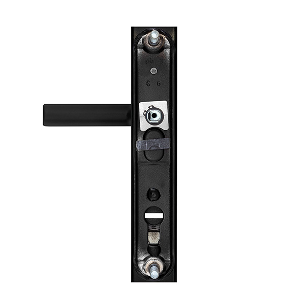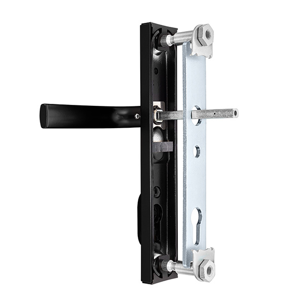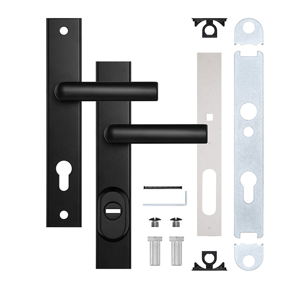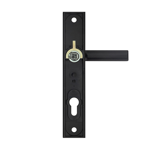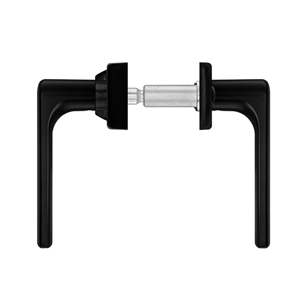 Зламостійкі ручки на планці з протектором чеського виробництва ROSTEX. Якщо у Вас виникає потреба надійно захистити замок та серцевину, то ця модель зможе повністю задовільнити її. Ручки виготовляються із міцної нержавіючої сталі, планки в свою чергу виготовляються із цинкового сплаву. Ззовні планки не видно отворів для кріплення, вони знаходяться в середині і фіксуються за допомогою двох масивних гвинтів М8. Серцевина захищена протектором із гартованої сталі і шайбою з отвором під ключ з нержавіючої сталі. Завдяки цьому ця модель має високий рівень захисту від висвердлювання, виламування та інших силових методів злому. Кольоровий відтінок захищений спеціальним методом гальваніки, що гарантує його стійкість до стирання протягом 120 місяців. Чорний матовий колір ідеально підійде як на двері темних відтінків в приміщеннях із стилем high-tech, так і на світлих, додатково ставлячи акцент на дизайн ручки. Ця модель оснащена зручною нажимною частиною з металевим пружиним механізмом, завдяки чому ручки не будуть провисати та розхитуватись. Під час вибору зверніть увагу на міжосьову відстань ручок та Вашого механізму замка. Дані ручки підходять тільки для механізмів замка з міжосьової відстанню 85 мм. За необхідності монтажу фурнітури на товстіші двері рекомендуємо придбати відповідний подовжуючий набір.
