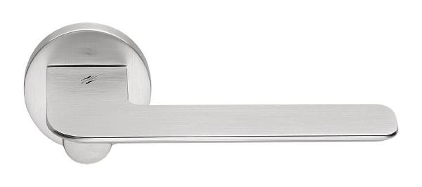 Італійські ручки на круглій розеті COLOMBO цінують в усьому світі за практичність та багатство вибору. Досягається це за рахунок використання найкращих матеріалів та залучення відомих дизайнерів. Дана модель виготовлена із латуні. Покрита спеціальним гальванічним покриттям, що забезпечує довговічність та стійкість до дрібних механічних пошкоджень. Ручки в кольорі “матовий хром” підійдуть для дверних полотен сірої гами із глянцевим покриттям та скляними вставками. Завдяки міцній стальній пружині в конструкції, ручка плавно натискається та не почне скрипіти навіть з часом. Монтуються просто і легко.