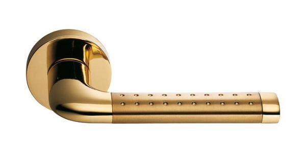 Італійські ручки на круглій розеті COLOMBO цінують в усьому світі за практичність та багатство вибору. Досягається це за рахунок використання найкращих матеріалів та залучення відомих дизайнерів. Дана модель виготовлена із латуні. Покрита спеціальним гальванічним покриттям, що забезпечує довговічність та стійкість до дрібних механічних пошкоджень. Оригінальність дизайну заключається в тому, що ручка в кольорі “полірована латунь” має вставку із кольором матового золота. Таке поєднання додатково підкреслює розуміння стилю власника помешкання. Завдяки міцній стальній пружині в конструкції, ручка плавно натискається та не почне скрипіти навіть з часом. Монтуються просто і легко.