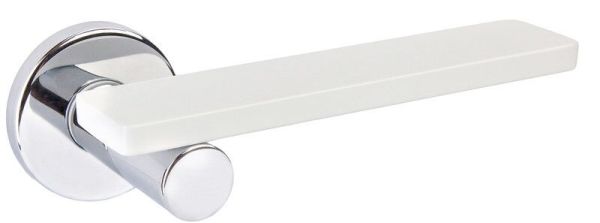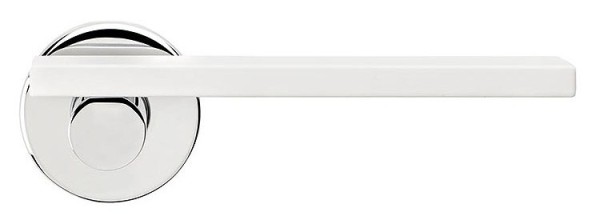 Італійські ручки на розеті DND by MARTINELLI. Ручки цієї торгової марки розробляються в тісній співпраці з відомими італійськими дизайнерами в сфері дверної фурнітури. Матеріал виготовлення – цинковий сплав, що дає змогу встановлювати їх і на міжкімнатні, і на вхідні двері. Ніжний колір – хром/білий – доречно впишеться у кімнату в світлих відтінках. Захист кольорового відтінку від пошкоджень та подряпин забезпечує спеціальний метод багатошарового гальванічного покриття. Завдяки цьому ручки будуть виглядати як нові протягом 60 місяців. Ручки можна встановлювати як на праві так і на ліві двері. Дизайн в стилі модерн доречно підкреслить приміщення з прямими та плавними лініями.
