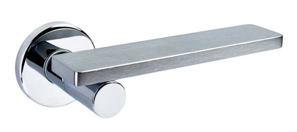 Італійські ручки на розеті DND by MARTINELLI. Ручки цієї торгової марки розробляються в тісній співпраці з відомими італійськими дизайнерами в сфері дверної фурнітури. Матеріал виготовлення – цинковий сплав, що дає змогу встановлювати їх і на міжкімнатні, і на вхідні двері. Популярний колір – матовий хром – чудово буде виглядати в приміщені чи кімнаті в сірих тонах. Захист кольорового відтінку від пошкоджень та подряпин забезпечує спеціальний метод багатошарового гальванічного покриття. Завдяки цьому ручки будуть виглядати як нові протягом 60 місяців. Ручки можна встановлювати як на праві так і на ліві двері. Дизайн в стилі модерн доречно підкреслить приміщення з прямими та плавними лініями.