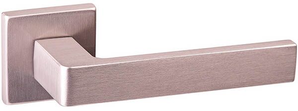 Італійські ручки на розеті DND by MARTINELLI. Ручки цієї торгової марки розробляються в тісній співпраці з відомими італійськими дизайнерами в сфері дверної фурнітури. Матеріал виготовлення – цинковий сплав, що дає змогу встановлювати їх і на міжкімнатні, і на вхідні двері. Популярний колір – матовий нікель – чудово буде виглядати в кімнаті або офісному приміщені з ніжними світлими відтінками. Захист кольорового відтінку від пошкоджень та подряпин забезпечує спеціальний метод багатошарового гальванічного покриття. Завдяки цьому ручки будуть виглядати як нові протягом 60 місяців. Ручки можна встановлювати як на праві так і на ліві двері. Сучасний дизайн в стилі хай-тек чудово підійде для дверного полотна з суворими гострими лініями.
