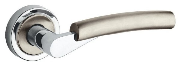 Італійські ручки на розеті популярної торгової марки FIMET. Найкращий вибір для міжкімнатних дверей. Виготовленні з високоякісного латунного сплаву за традиційними італійськими технологіями виробництва. Нажимна частина ручки приємно лягає в руку та зручна у використанні. Завдяки спеціальній двозавитковій пружині ручка не буде провисати. Багатошарове гальванічне покриття забезпечить стійкість кольорового відтінку до стирання та подряпин. Популярний колір хром/матовий нікель чудово буде виглядати в приміщені чи кімнаті з світлими деталями. Дизайн в стилі модерн підкреслить дверні полотна з плавними лініями.
