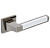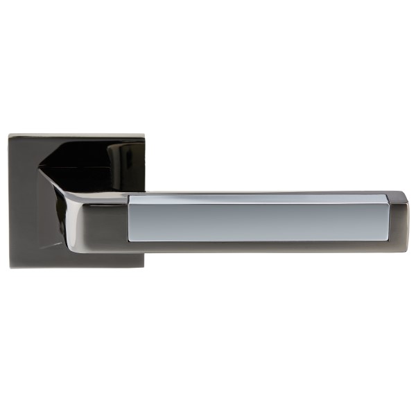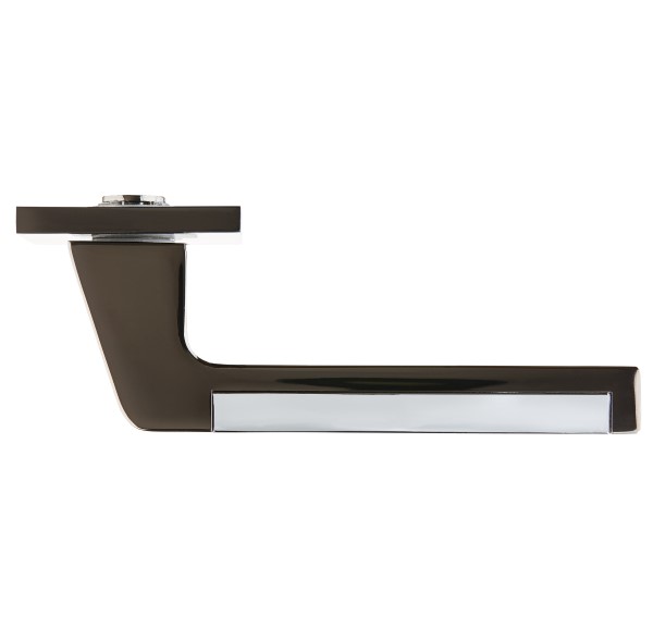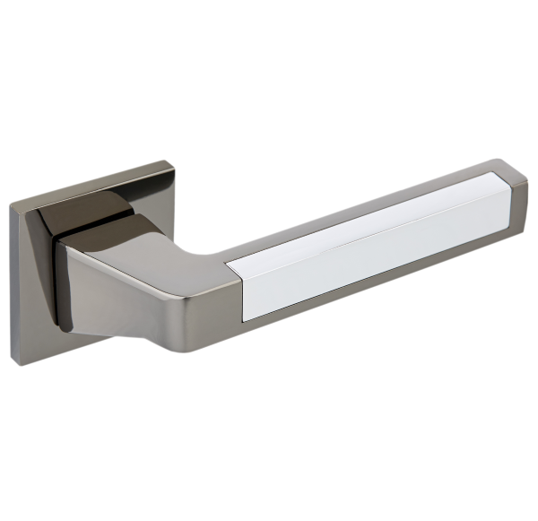 Комплект роздільних ручок французької ТМ "GAVROCHE" - відмінна якість і довговічність роботи. Ручки суцільнолиті, важкі, виготовлені із цинкового сплаву. Кольоровий відтінок наноситься спеціальним методом – гальваніки. Це гарантує термін служби покриття протягом 60 місяців - офіційна гарантія виробника. Зручна форма нажимної частини зробить користування приємним. Родзинка цієї моделі - дуже тонка розета - 5 мм, суцільна, з гострими прямими кутами. Це робить ручку надзвичайно стильною та оригінальною. На дверному полотні виглядає вишукано та елегантно. Поєднання відтінків - чорний нікель із хромованою вставкою - довершить дері в сірих тонах. Дуже гарно виглядатиме на полотнах з чорним склом. Якщо у Вас приміщення в стилі хай-тек або модер - саме ця ручка - прекрасний вибір. В ручках такого типу не видно отворів для кріплення, вони прикриваються зовнішньою кришкою розети. Ручка просто і легко монтується. Залежно від встановленого замка та товщини дверей, ручку можна зафіксувати на стяжні гвинти або саморізи.
