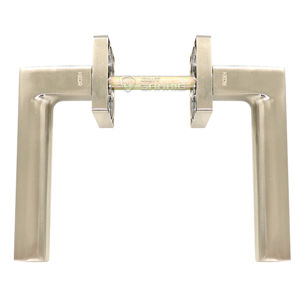 Ручки на розеті торгової марки KEDR. Це практичний товар по доступній ціні. Матеріал виготовлення – алюмінієвий сплав. Нажимна частина зручна та приємна у користуванні. Покриття методом гальваніки, гарантує збереження зовнішнього вигляду ручки протягом 36 місяців. Приємний колір – сатин/хром – чудово поєднується з світлим інтер’єром. Монтуються такі ручки без особливих труднощів. На дверному полотні мають охайний вигляд, оскільки отвори для кріплення прихованні зовнішньою кришкою розети.