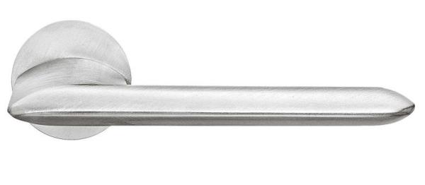 Ручки на розеті торгової марки MVM. Ця модель представляє собою надійну та якісну фурнітуру за прийнятну ціну. Матеріал виготовлення – цинковий сплав. Нажимна частина зручна та приємна на дотик, завдяки чому користування буде приносити лише задоволення. Кольоровий відтінок наноситься спеціальним методом гальваніки, що гарантує термін служби покриття близько 60 місяців. Така модель чудово підкреслить дверні полотна з прямими лініями. Колір цієї моделі матовий старий хром, чудово підійде для світлого інтер’єру. Ручки такого типу виглядають естетично, в них не видно отворів для кріплення, вони прикриваються зовнішньою кришкою розети. Дивлячись який встановлено замфок та яка товщина дверей, ручку можна зафіксувати на стяжні гвинти або на саморізи.