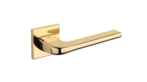 Ручки на розеті португальського виробництва TUPAI. Дверна фурнітура зроблена з урахуванням екологічних європейських стандартів. Виготовляється із латуні за сучасними технологіями на фабриці в Португалії. Золото поліроване – це яскравий колір, який чудово доповнить інтер’єр із золотими елементами та наповнить приміщення світлими відтінками. Покриття наноситься спеціальним методом гальваніки у декілька шарів. Завдяки цьому ручки виглядатимуть як нові до 24 місяців. Додатково це забезпечує стійкість кольору до пошкодження та подряпин. Ця модель має тонку розету, всього 5 мм, завдяки чому виглядає охайно та естетично привабливо на дверному полотні. Ручки виконані в сучасному стилі хай-тек, який можна поєднувати з дверима в мінімалістичному дизайні або з суворими прямими лініями.