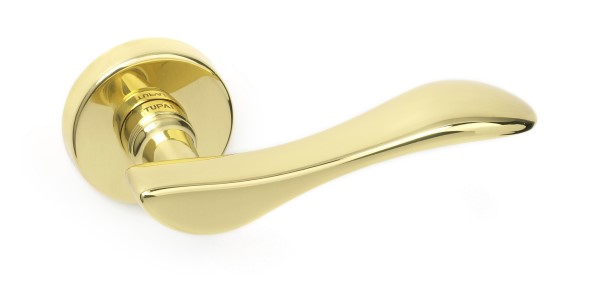 Ручки на розеті португальського виробництва TUPAI. Дверна фурнітура зроблена з урахуванням екологічних європейських стандартів. Виготовляється із латуні за сучасними технологіями на фабриці в Португалії. Золото поліроване – це яскравий колір, який чудово доповнить інтер’єр із золотими елементами та наповнить приміщення світлими відтінками. Покриття наноситься спеціальним методом гальваніки у декілька шарів. Завдяки цьому ручки виглядатимуть як нові до 24 місяців. Додатково це забезпечує стійкість кольору до пошкодження та подряпин. Також нажимна частина має подвійну металеву пружину, завдяки чому ручка не буде провисати. Вишуканий класичний дизайн ручки чудово доповнить дверне полотно з плавними лініями.