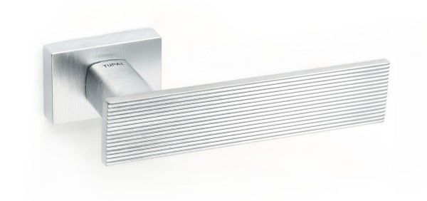 Ручки на розеті португальського виробництва TUPAI. Дверна фурнітура зроблена з урахуванням екологічних європейських стандартів. Матеріал виготовлення – цинк-алюмінієвий сплав. Сучасний колір – хром матовий – вдалий вибір для приміщення в спокійних сірих тонах. Покриття наноситься спеціальним методом гальваніки у декілька шарів. Завдяки цьому ручки виглядатимуть як нові до 24 місяців. Нажимна частина має подвійну металеву пружину, завдяки чому ручка не буде провисати. Прямокутна форма розети в стилі хай-тек чудово підійде для інтер’єру з сучасними прямими деталями.